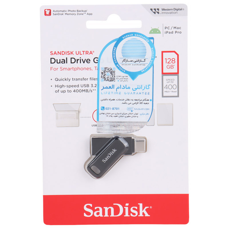 فلش 128 گیگ سن دیسک SanDisk Ultra Dual Drive Go OTG Type-C USB3.2