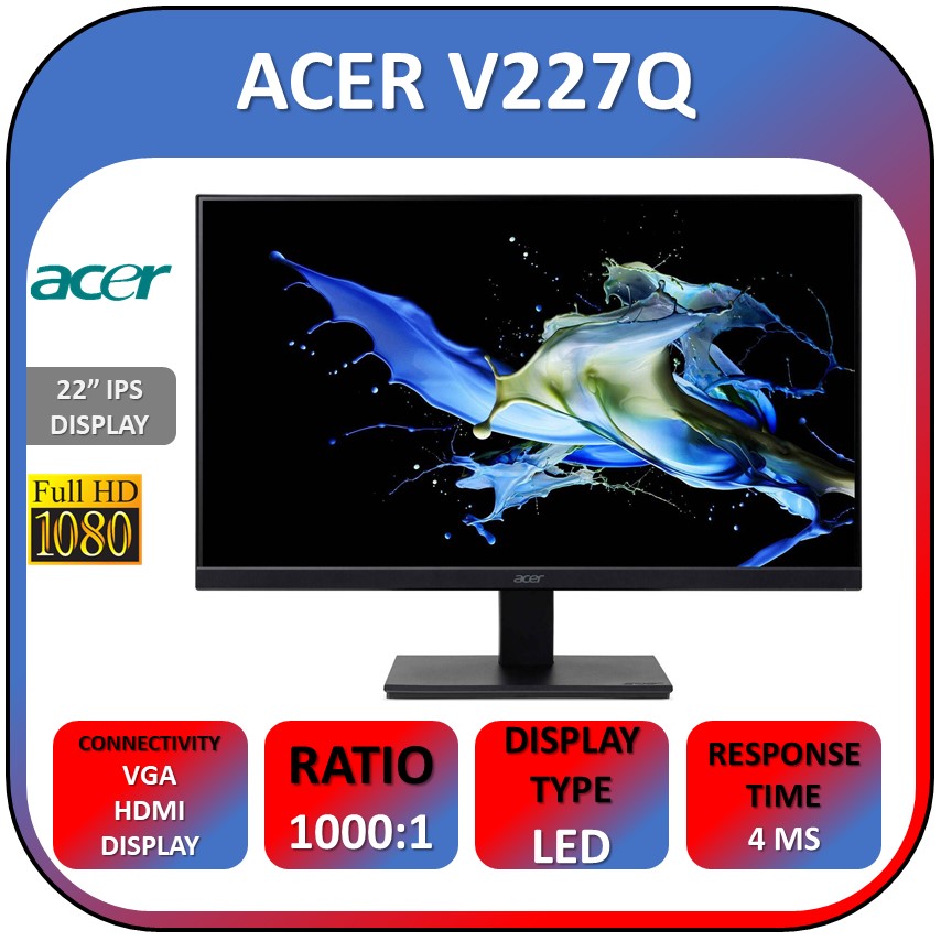طراحی قاب مانیتور Acer V227Q آن را برای تنظیمات چند مانیتور ایده آل ساخته است. دارای پنل IPS می باشد .