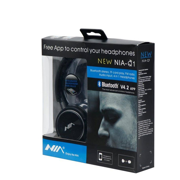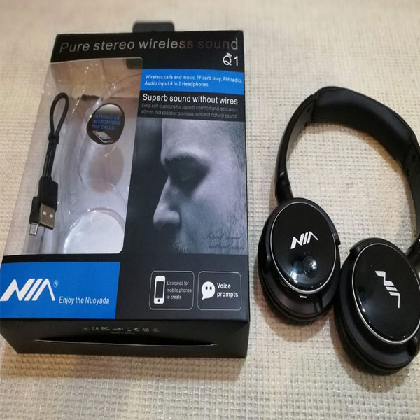 هدفون Q1 محصولی از برند NIA که یک هدفون بیسیم محسوب میشود. این هدفون به غیر از اتصال بیسیم بلوتوث، امکان استفاده از جک 3.5 میلیمتری برای اتصال موبایل هم وجود دارد. یک شیار کارت حافظه برای استفاده از حافظه micro SD ، مدت زمان شارژ 2 ساعت میباشد.